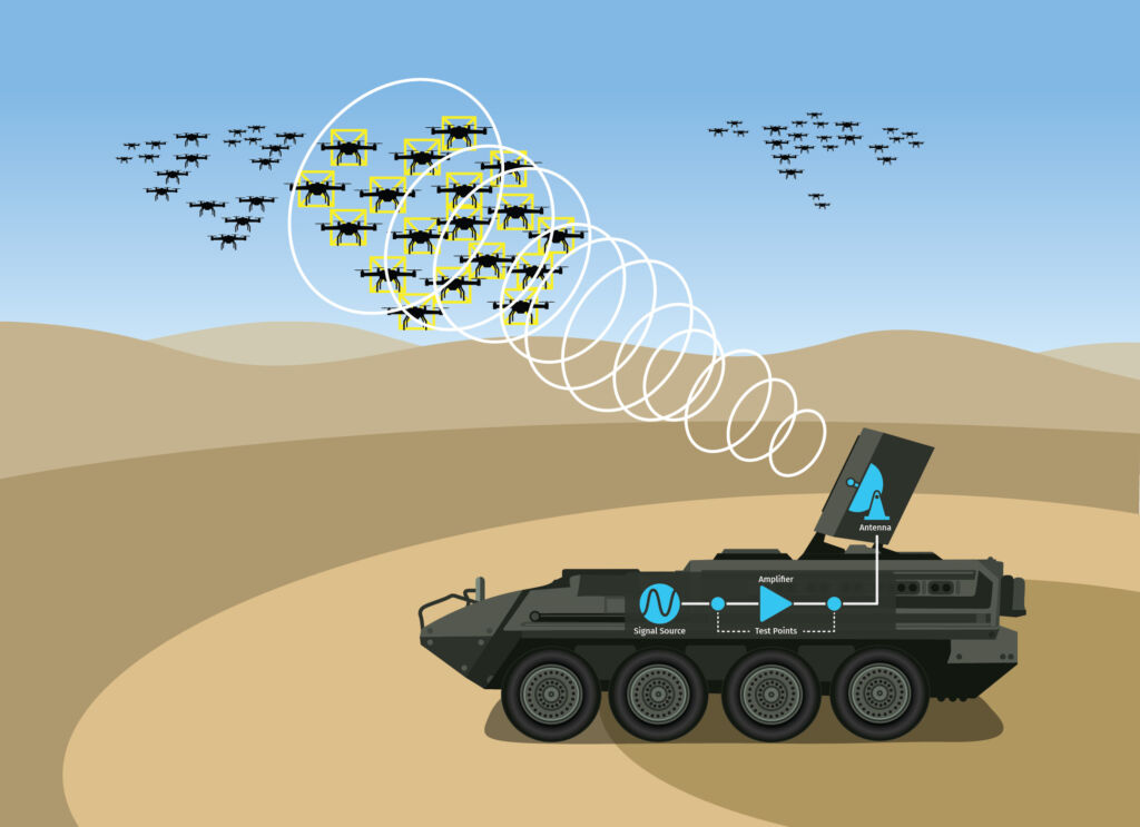 The illustration below gives a look at how an HPM system functions and how its performance is tested and validated. From signal generation and amplification to measurement and analysis, each stage is critical in executing single- and multi-target engagement operations effectively, such as neutralizing hostile drones.