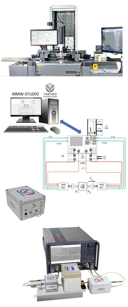 Learn how the MMW-STUDIO – a software suite provided by Vertigo Technologies that enables power and phase control at the DUT reference plane through the extenders – performs a power-controlled S-parameter measurement and an active load pull in the WR6.5 waveguide band (110 GHz – 170 GHz) on a waveguide connectorized amplifier.