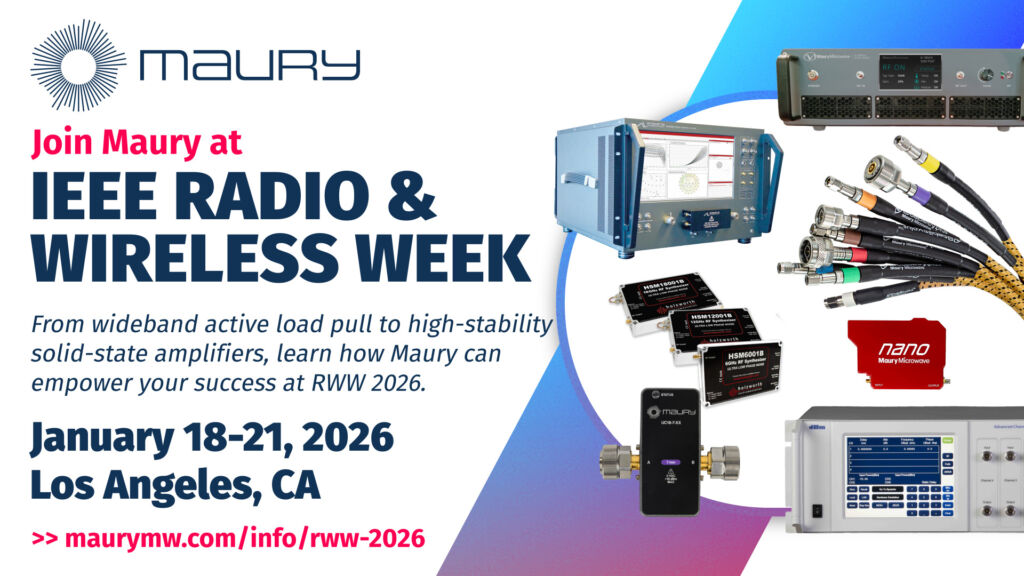 From wideband active load pull and high-stability solid-state power amplifiers to high-performance RF test and measurement solutions and phase-stable cables, learn how Maury can empower your success at IEEE Radio & Wireless Week (RWW) 2026.