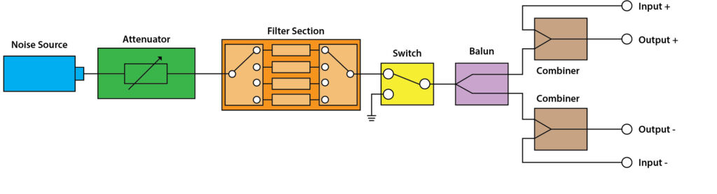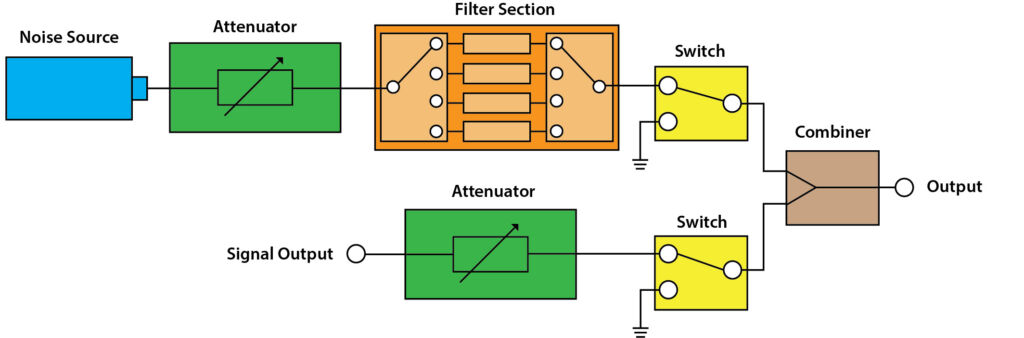 Noise sources can be combined with amplifiers, precision attenuators, and filters to become semi-automated and automated instruments for generating AWGN with specific power levels and frequencies.