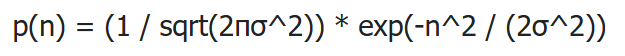 The noise amplitude follows a Gaussian distribution, also known as a normal distribution. This means that the noise values are random but have a bell-shaped probability distribution centered at zero (mean = 0). The probability density function (PDF) of Gaussian noise is given by: